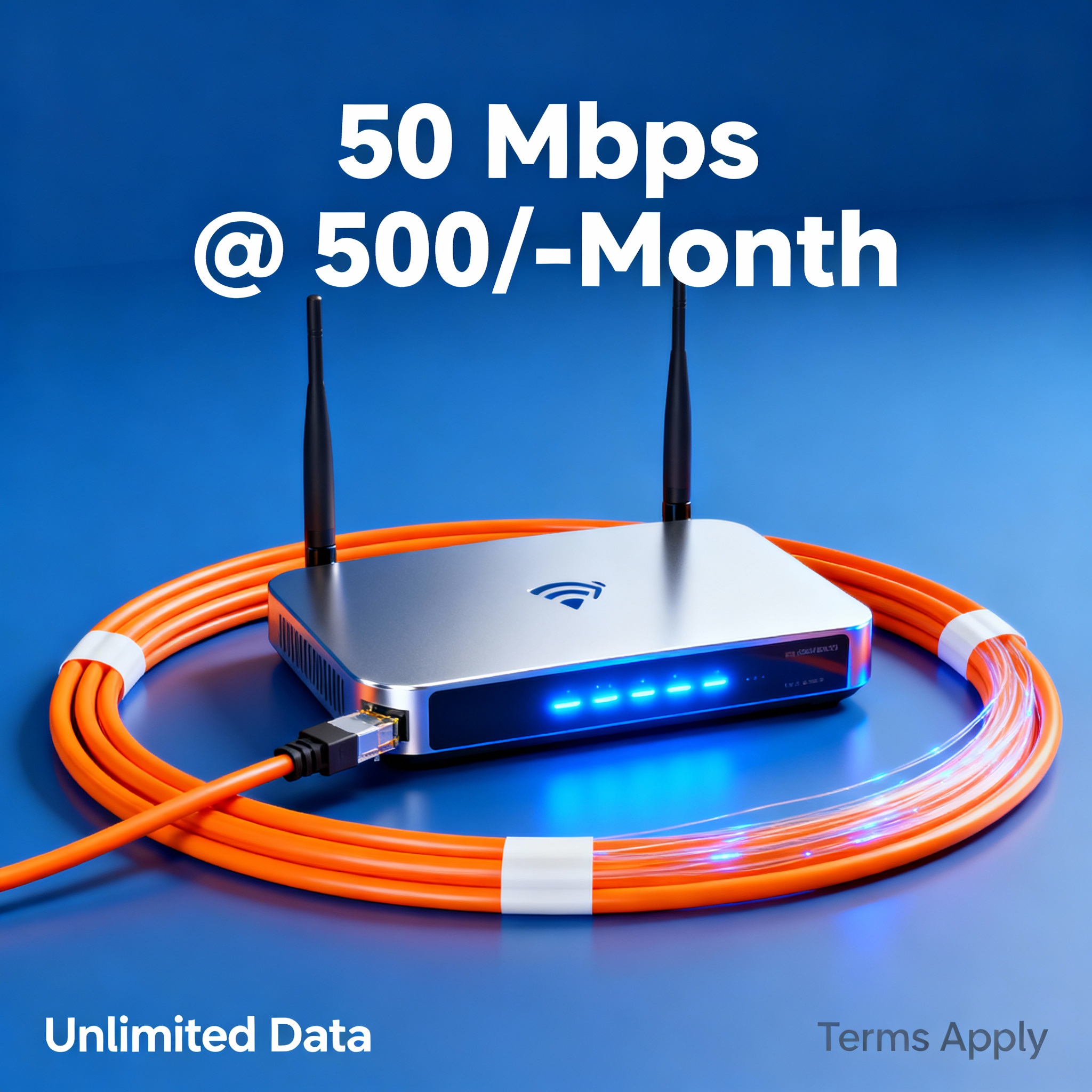 Surf the fast lane with our 50 Mbps plan. 425 days of speedy internet for just 5000/-